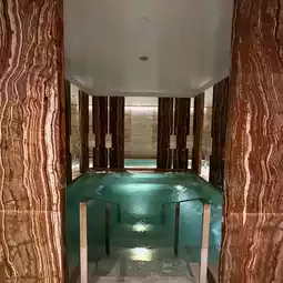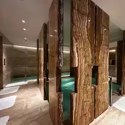 Are you still worried about checking in at the hotel pool? Park Hyatt Shenzhen tells you that the real surprise is hidden in the dressing room! Walking into the dressing area here, you will be instantly shocked by the design of the pool space - a wall made of thousands of layers of jade stone stands in front of you, and the layers of texture are like a natural art scroll. Under the rendering of warm yellow light, it exudes a warm and luxurious texture.