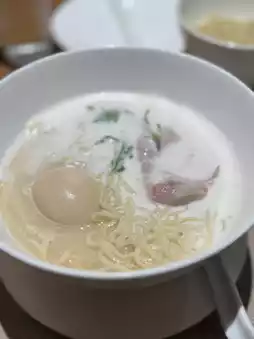 There are two kinds of ramen: clear chicken soup and rich pork bone broth. This time I tried the rich pork bone broth. Both are quite good and not dry. Most importantly, when adding noodles, I will cook a new soup again.