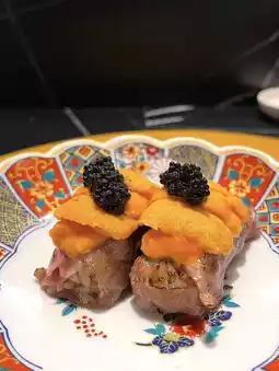 The most anticipated sea urchin hot dog did not disappoint. The sea urchin, tuna, rice and seaweed melted in the mouth in one bite. Who knows