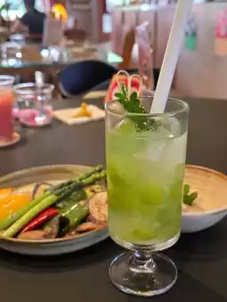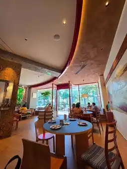The restaurant's aesthetic design boasts hand-painted murals, stylish hangings, and unique chairs for each table. The outdoor dining area, accented by colorful floral arrangements, has become a popular photo-op. It's perfect for diners seeking a spicy, creative fusion meal or discerning dining ambiance.