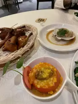 The Chinese restaurant at Kingkey Bay Hotel in Dameisha specializes in crispy breast pigeon, tomato-baked bacon, steamed crispy scallops, and Pipa tofu