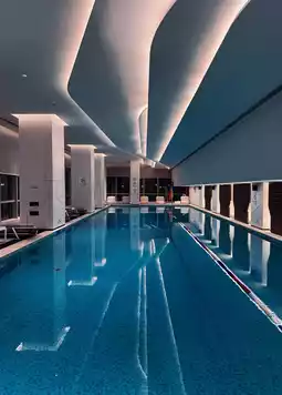 After a long day, jump into the azure pool in your swimsuit! Blue skies above, only the sound of water waves in your ears🌊 Relax on lounge chairs after swimming - fatigue instantly gone!