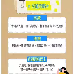 ➡ High-speed rail: Hong Kong West Kowloon → Futian High-speed Rail Station → Take a taxi to the hotel (30 minutes)