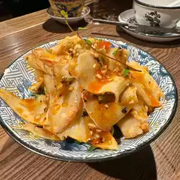 In one word: rich. Besides the star ingredients of the dish, there's also a variety of toppings like squid throat, tripe, lettuce, and loofah. The pot is overflowing with ingredients, and every bite is a different surprise. The chewy squid, the savory shrimp, the crispy squid throat, the chewy tripe, and the fresh lettuce and loofah create a distinct and rich flavor. Twice-cooked Pork with Salted Vegetables