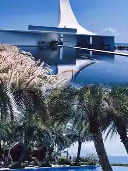→ 7:00 AM watch the sunrise! Lie on a private beach and shoot pure white silhouettes of the "Sail Chapel"