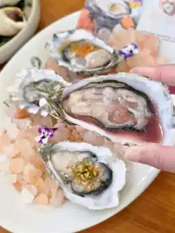 The oysters here are chartered and airlifted three times a week, and fresh oysters are delivered directly by special planes to ensure freshness. Moreover, the professional oyster opener opens the oysters on order when they arrive at the store, and they can be eaten immediately after opening the shell to ensure the best flavor restoration. The oyster opener takes care of every step carefully, and every oyster is served with quality assurance. It is absolutely fresh when you take a bite!! The oyster meat is plump and tender, and the sweetness of the seawater bursts in your mouth, which is super delicious. Four seasons sashimi oysters use four different toppings!