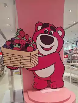 The shop is quite large and the oversized strawberry bear in the shop is very eye-catching and will be attracted to children passing by.