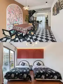 The decor is vintage Nanyang style with French flair! Two floors, 4 bedrooms, 7 beds, the second-floor balcony faces the sea, and there’s a private sea view bathtub on the first floor~