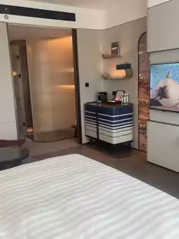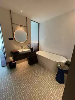 This time I stayed for three days and two nights ☀️ Room 45 square meters, a king bed 👀 Book on Trip.com and upgraded to the 15th floor 🎢 The view is very sunny, plus the room decoration design is novel, with a separate location cloakroom 🎩 bathtub 🛀 shower 🛀 rainforest shower 🚿 dry and wet separation 🏝️ make me really get holiday enjoyment