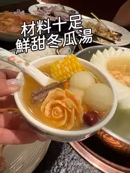 Basically every table will order, the whole winter melon in the pot for hot pot🍲 The clerk got it already very shocking! The soup itself already has winter melon, mushrooms, Chinese gooseberry, red dates, all of which are very healthy ingredients😍 First come to drink a bowl of soup, it's so fresh and sweet😋