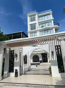 The entrance features an arched art corridor - super photogenic! Feels like a Southern French town! Outdoor amenities include a French-style swimming pool and hot spring bath ♨️