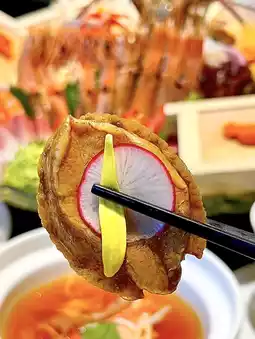 Live sea urchin • Deluxe sashimi platter • Abalone with abalone sauce • Peony shrimp • Big sweet shrimp • Milky frozen foie gras • Irish lobster • Golden pillow durian • Salmon sashimi • M9 Wagyu beef