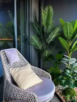 The balcony features two rattan chairs with cushions, flanked by plants like pothos and monstera, creating a naturally comfortable viewing spot. Mornings and evenings, we sit on the chairs to watch fishing boats sail by and people stroll along the beach. The children love to use their small stools to perch on the railing and watch the seagulls. We make a cup of tea and while away the hours, the sea breeze mingling with the fragrance of the greenery helps to slow down the pace of childcare.