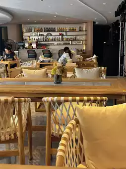 The large projector is a favorite of the children. It projects clear images as soon as it's plugged in. The children turn on cartoons and watch intently on the sofa as soon as they enter the room. The projection image quality was good, and the light wasn't glaring. Parents could relax while their children watched cartoons, a rare moment of relaxation while raising children. The only drawback was the lack of dedicated family-friendly amenities in the room, such as a tent or toy corner. Younger children might need additional entertainment. The dual bathrooms made washing up easier, allowing the whole family to use the room without crowding. 🍝Hotel Dining