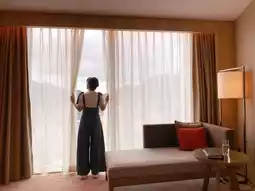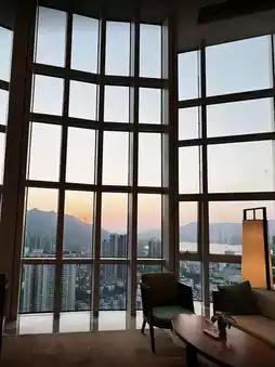 The hotel rooms are all situated above the 30th floor, and I stayed in a standard mountain view king room on the 48th floor. When I opened the curtains, I was greeted by a view of city buildings—not a perfect mountain view, but the high floor provided a broad perspective. To the left, I could even see the sea. At night, the city lights flickered between the contours of the mountains and the sea, creating a unique atmosphere of being away from the hustle and bustle while still feeling connected. It’s perfect for those moments when you don’t want too much excitement but also don’t want to feel completely isolated.