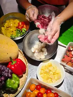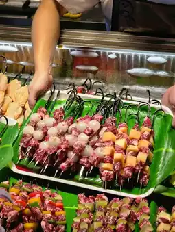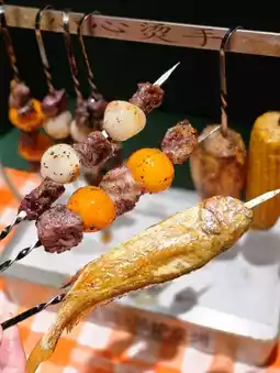 🍍 Daily skewers of barbecue, paired with seasonal fruits, after charcoal fire sweet taste, eat to reduce greasiness!