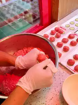 The freshly hand-beaten beef is firm, plump, and springy daily, and the rich, juicy meat is incredibly delicious.
