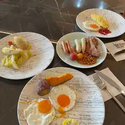 Shenzhen Meijing Pavilion Hotel 🏨 Binshan Leisure Restaurant Buffet Breakfast 🍳 Spacious environment High ceiling 🎏 Outdoor seating 🤠 Comfortable sitting 🧑🏻 💼 Waiters professional and polite and efficient 👩🏻 💼 After 8am during peak crowd ⏰