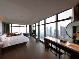 Nestled amidst Shenzhen's bustling urban skyline, the hotel boasts a stunning 270° panoramic view 🌁, offering guests breathtaking sights of Shenzhen Bay 🌊. The seamless blend of sea and sky is truly mesmerizing.