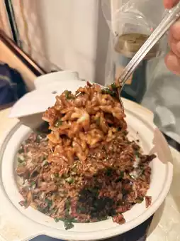 The duck jerky pot-stirred rice is very big, and the duck jerky is rich with shallots and black soy sauce. It is fragrant and delicious, but a little oily.