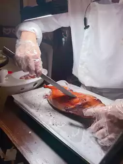 After placing the order, the master will slice the duck in front of you for a while, the technique is proficient and not quick, the knife skills are great 👍.