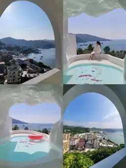 A blue and white holy island suddenly appeared in Shenzhen! Beautiful accommodation with a pool on the cliff, traveling across the Mediterranean Sea in a second