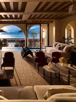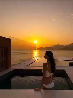 The salty sea breeze brushes through your hair as the sound of waves gently caresses the shore. In the height of summer, by the poolside of a dreamlike retreat, the setting sun bathes the orange buildings in a honeyed glow. It’s in this moment that the true meaning of "vacation" becomes clear—letting time slow down into a tranquil pool of serenity.