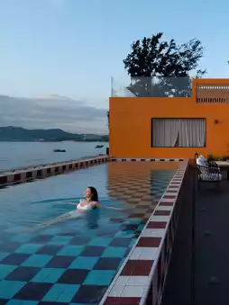 At sunrise, the horizon is painted in the hues of orange soda, and the pool’s surface glimmers with flecks of gold. Reclining on a wicker chair with a chilled lychee soda in hand, the bubbles burst sweetly on my tongue. The laughter of children drifts from the beach, while the pool’s gentle ripples seem to echo a tender incantation. This summer, this pool, this guesthouse—it’s a gift of escape for myself. When the city’s clamor is swallowed by the waves and life’s trivial worries flow away with the water, I finally understand the meaning of "a dream fulfilled on the other shore"—the best scenery is where the heart finds its harbor.
