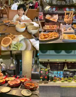 There is even a children's exclusive dining table, full of cartoon-shaped snacks🍩