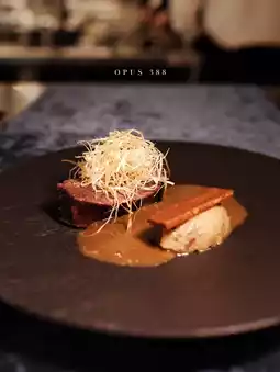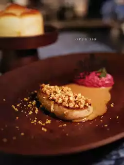 Fry Dordogne foie gras until crispy on the outside and tender on the inside, served with Shandong beetroot puree and pine nuts
