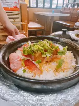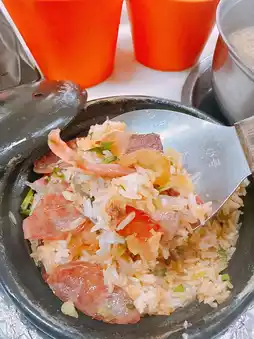 Very rich bacon and sausage pot-stirred rice, with taro inside, fragrant and delicious😋, the main rice banana is crispy, very good.