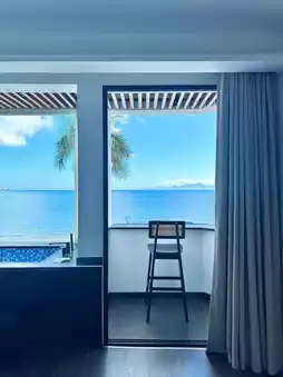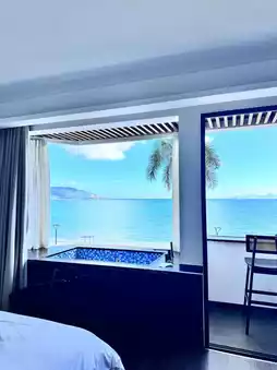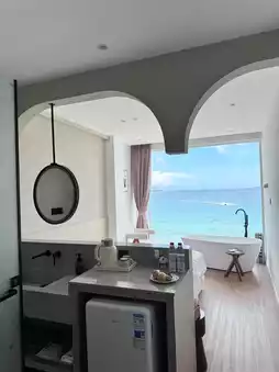 Located in the first row by the sea at Nan'ao First Beach, it's just a 1-3 minute walk to the beach entrance. You can enjoy sea views directly from your room with a 180-degree panoramic view. The rooms are clean and comfortable, with separate wet and dry areas in the bathroom, a refrigerator, and a projector.