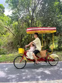 Breakfast ⥤ Family biking ⥤ Qiniang Mountain sheep fields ⥤ Horseback riding + go-karts ⥤ Lunch & rest ⥤ Creek trekking ⥤ Beachcombing (check tide schedule)