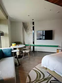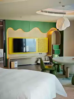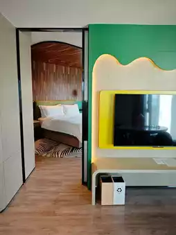 🌲 A harmonious blend of vibrant colors and functional design in this fairytale-inspired space, featuring partitioned areas for versatile use in leisure or work - perfect for family vacations, gatherings, or girls' trips 🙌🏻
