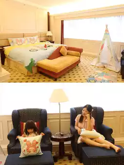 We stayed in the Crown Family Room – a spacious 70 sqm! 🚗 The 2-meter king bed + cartoon-themed decor had our kid squealing and dashing straight to the tent upon entry. 👑 The bathroom tub is larger than standard hotel ones, perfect for splashy fun (kids went wild!) and relaxing soaks for adults. 🛁