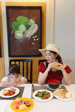 🍽 Breakfast at the 3rd-floor floor-to-ceiling window restaurant pairs city views with healing vibes. 🌇 The Chinese restaurant *gets* kids – finger-licking lemon char siu, crispy-juicy roasted pigeon, and adorable bento-style kids' meals too cute to eat! 🍗🍱