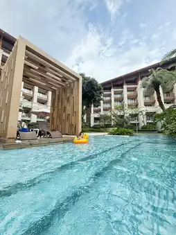 Both the indoor and outdoor pools are located on the B1 floor. The indoor pool has a nearby bathroom, but towels and a shower area are provided. It can be used even on check-out day. #ShenzhenJinshawan