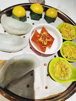 "Chef Tan's Zhongshan Family Cuisine" at Sea World was a true home-style experience. There were grass carp and fish cakes, cold cucumber and clams, pan-fried clams and thai fish cakes, pork liver in broth with wolfberry sprouts, and a traditional dim sum platter.