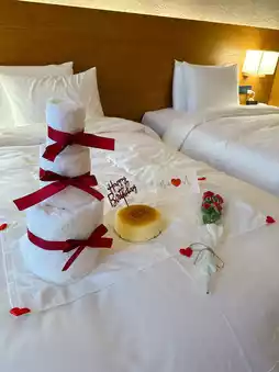 The MUJI Hotel Shenzhen offers an immersive experience with minimalist Japanese design. The ambiance is tranquil and comfortable, with wooden furniture and natural colors creating a warm atmosphere. The soft bedding reflects the brand's high-quality details. I'm especially grateful for the hotel's thoughtful surprises. The warm birthday decorations in the room, the woven bouquet, the exquisite cake, and the birthday card were truly heartwarming. The service was excellent, with the staff being friendly, professional, and attentive. The hotel is seamlessly connected to the MUJI store, the restaurant offers healthy and delicious Japanese fare, and the public lounge area is perfect for reading and relaxing.
