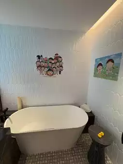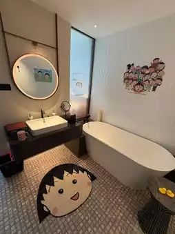 The Maruko-themed room feels more thoughtfully designed compared to other themed hotel rooms. Additionally, the hotel's overall design, cleanliness, and modernity stand out.