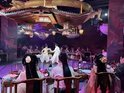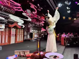 The immersive experience is like traveling back in time to the Tang Dynasty. Between meals, there will be performances featuring spectacular ancient-style performances, accompanied by light projections and music. Dining while watching the performances feels like stepping back in time!