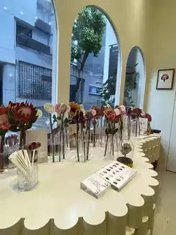 I've been to Nantou Old Town several times, and each time I find something new and surprising. I was drawn into the shop by the theater's decor at the entrance. The interior is simple, with colorful paper flowers everywhere.