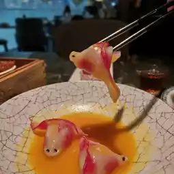 These dumplings are exquisitely crafted, resembling tiny swimming goldfish. Beneath the translucent skin lies a rich filling, often made with shrimp and other seafood, making them particularly delightful.