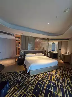 This summer, I traveled north to the Nanshan Bolin Tianrui Sheraton Hotel for a two-day, one-night staycation. Located in the Nanshan University District, the hotel offers a tranquil escape from the hustle and bustle of the city center, yet boasts a vibrant atmosphere. It's adjacent to the urban village with its diverse dining options and Yitian Holiday Village shopping mall. The hotel itself, from the lobby to the restaurant to the recreational facilities, exudes a resort-like feel. First, let's talk about the room. This time, we stayed in a corner suite, which felt spacious and comfortable with a large double bed. The room was well-equipped and had a stunning view. The hotel's indoor pool features a unique transparent poolside, and the spacious fitness room offers a wide variety of equipment, perfect for those who want to keep fit while on vacation. The breakfast buffet also offers a rich selection, featuring both Chinese and Western cuisine. Overall, it's a great choice for a short getaway.