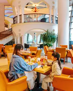 Their Western restaurant is also a favorite of mine. We booked an all-inclusive family room package, which included all-you-can-eat snacks and drinks throughout the day, including a variety of delicious drinks and my favorite ice cream cones 🍦. The buffet dinner and breakfast are equally sumptuous, and the spacious views and retro decor create a truly captivating atmosphere.