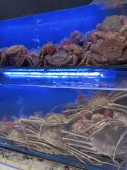 The crabs are sourced from Russia, where the waters are extremely cold. The cold waters give the seafood a particularly fresh and sweet flavor. Upon entering this restaurant, you'll see a large tank filled with three nights' worth of crabs, including snow crab, king crab, and hairy crab.