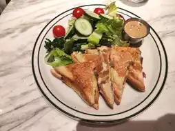 (The sandwich is perfectly crispy; filled with rich cheese that doesn’t feel overwhelming; the smoked beef is aromatic; paired with salad greens, making it super healthy.)