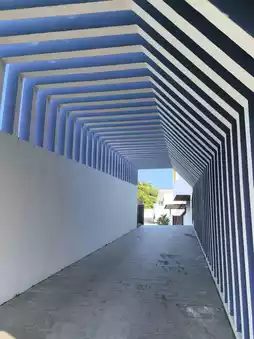▫️ All-wood corridors with stunning sunlight patterns through latticework