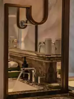Super spacious! The vanity surrounded by five vintage mirrors is full of character 🪞