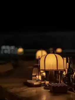 Dark oak floors, gray finishes, oriental wooden screens, alabaster wall lamps...
